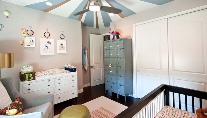 จุดนี้อาจดูเหมือนจะไม่สำคัญสักเท่าไหร่ เพราะเวลานอนหลับตาก็มองไม่เห็นอะไร เห็นแค่เพดานเรียบๆ ก็น่าจะพอแล้ว แต่ความจริงแล้วเราสามารถเปลี่ยนห้องธรรมดาให้ดูพิเศษขึ้นได้ ด้วยการทาสีอ่อนกว่าสีผนัง 20% จะทำให้เพดานดูเตี้ยลง ติดวอลล์เปเปอร์ที่ฝ้าเพดาน หรือการสาดไฟที่เพดานให้เป็นสีนวลก็ดีไม่น้อย เพราะช่วยให้ห้องดูมีอะไรมากกว่าเดิม