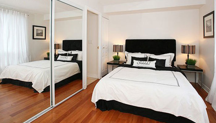 • ในห้องนอนไม่ควรมีกระจกที่ตรงกับเตียงนอน หรือตู้เสื้อผ้าที่ประตูเป็นกระจก เพราะกระจกจะรบกวนการนอนของเรา กระจกที่ตรงกับเตียงนอน จะทำให้เกิดปัญหามือที่ 3 ในชีวิตคู่ นอกจากนี้กระจกยังแฝงพลังงานที่มากเกินไปสำหรับการพักผ่อนอีกด้วย แต่ถ้าเคลื่อนย้ายกระจกเหล่านั้นออกไปไม่ได้ ให้หาผ้ามาคลุมไว้