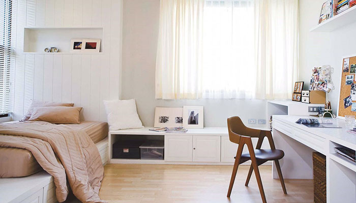 • เก็บหนังสือไว้ที่อื่น ถ้าเป็นหนังสือ 2-3 เล่ม เอาไว้อ่านก่อนนอนก็ไม่เป็นไร แต่ถ้าเยอะกว่านั้น เราจะรู้สึกถูกล้อมด้วยกองทัพหนังสือ ห้องนอนเป็นสถานที่สำหรับการนอนหลับพักผ่อน หนังสือจำนวนมากมายจะทำให้ห้องนอนเหมือนห้องทำงาน